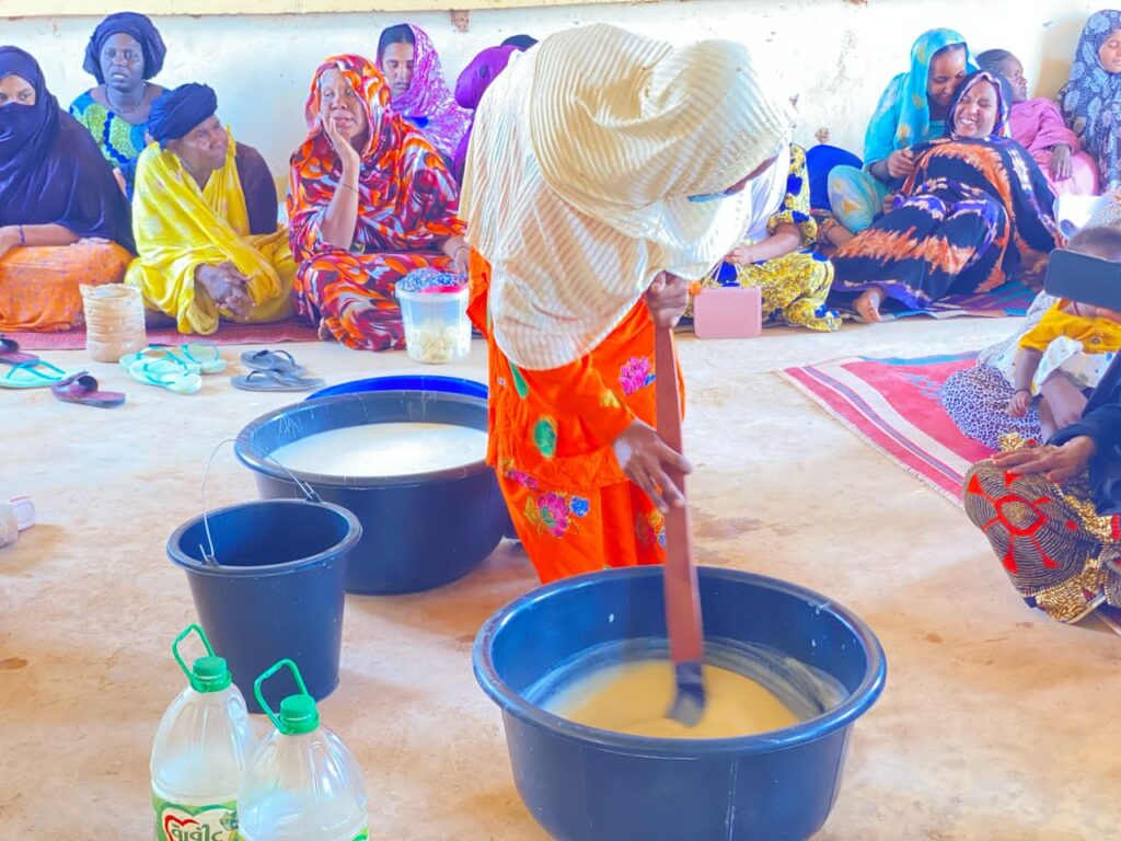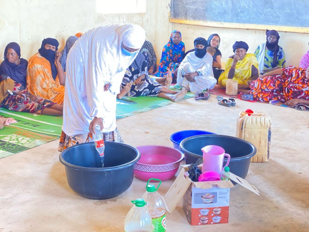 Les bénéficiaires ont été initiées à la fabrication de produits de savon local dans une ambiance d’apprentissage collective, favorisant l’échange et la cohésion sociale. Cette activité vise à offrir aux participantes des compétences génératrices de revenus, tout en soutenant la scolarisation des jeunes filles à travers l’implication de leurs mères.